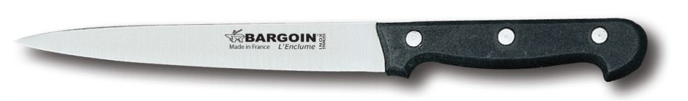 Ce couteau Bargoin sera parfait pour vos découpes ! Lame en acier suédois 17cm : tenue incroyable Manche en ABS noir 3 rivets : robustesse assurée